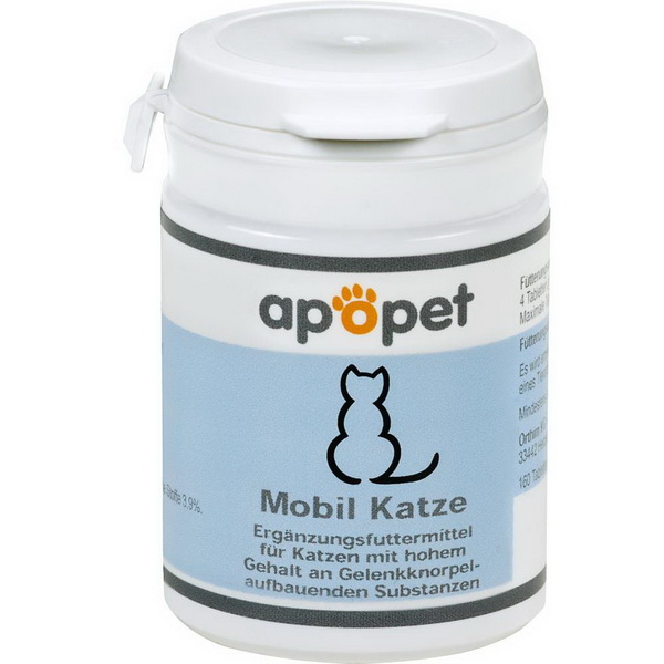 apopet Mobil Katze enthält natürliche Wirkstoffe um Mangelerscheinungen vorzubeugen. Halten Sie Ihre Katze mobil durch die einfach anzuwendenden, schmackhaften Vitabletten jeden Tag!