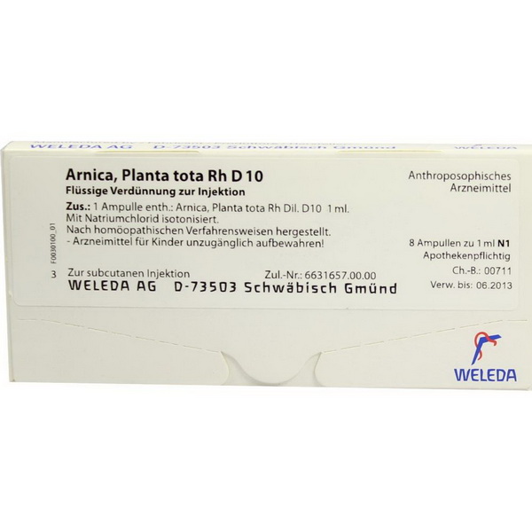 1 Ampulle enthält: wirkstoff: Arnica planta tota Rh Dil. D10 1 ml.