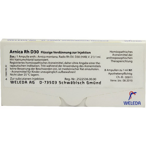 1 Ampulle enthält: Wirkstoff: Arnica montana, Radix Rh Dil. D30 1 ml (HAB, V.21). Mit Natriumchlorid isotonisiert.
