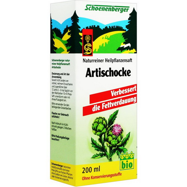 Schoenenberger Heilpflanzensäfte sind reine Press-Säfte aus frischen Pflanzen ohne Zusatz von Zucker, Alkohol, Konservierungsmitteln oder anderen, oft unerwünschten Stoffen. Durch völlig natürliche Vorgänge können sich im Artischocken-Frischpflanzen-Presssaft Ausflockungen bilden, welche die Qualität jedoch in keiner Weise beeinträchtigen. Diese Stoffe lassen sich vor Gebrauch aufschütteln.