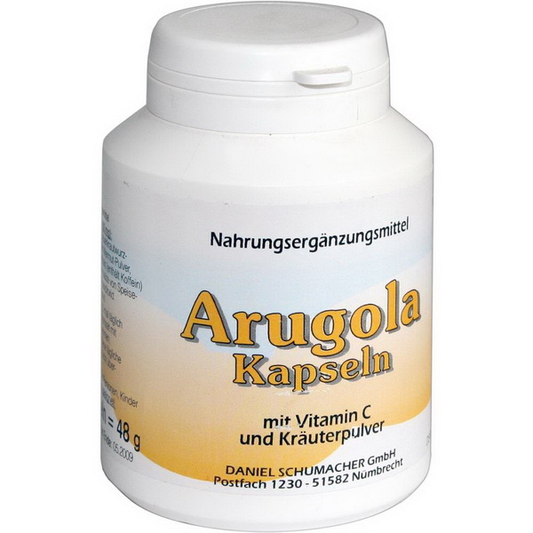 Arugola (Rukolasamenpulver) 22 %, Maggikrautwurzel-Pulver (Levisticum off.) 22%, Löwenzahnwurzel-Pulver 22,0 %, Gelatine, Ascorbinsäure (Vit.C) 8,8 %, Guaranaextrakt (Enthält Koffein). Farbstoff Titandioxid.