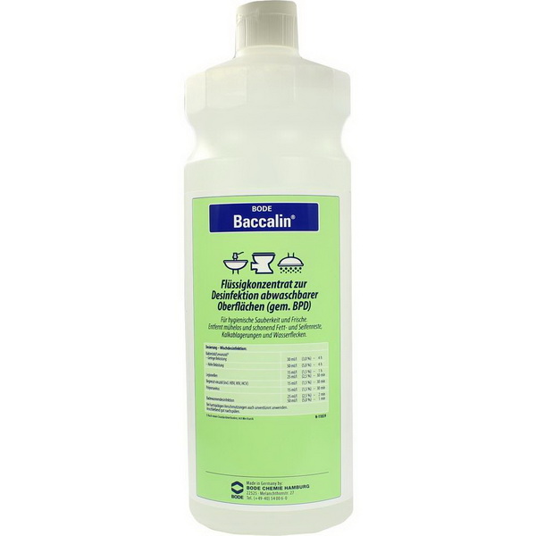 Baccalin eignet sich zur desinfizierenden Reinigung aller abwaschbaren Flächen und Gegenstände bei denen verstärkt mit Kalk und Wassersteinablagerungen gerechnet werden muss.