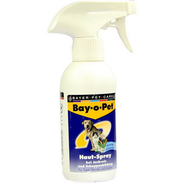 Bay-o-Pet® Haut-Spray unterstützt bei trockener und irritierter Haut von Hund und Katze. Häufige Folgen trockener und irritierter Haut sind nicht nur Juckreiz und Schuppenbildung, durch Kratzen und Lecken kann es auch zu ernsthaften Entzündungen sowie Haarausfall kommen. Mit einer perfekt abgestimmten Zusammensetzung pflegender Inhaltsstoffe gleicht das Bay-o-Pet® Haut- Spray Mangelerscheinungen der Haut und des Fells schnell wieder aus.
