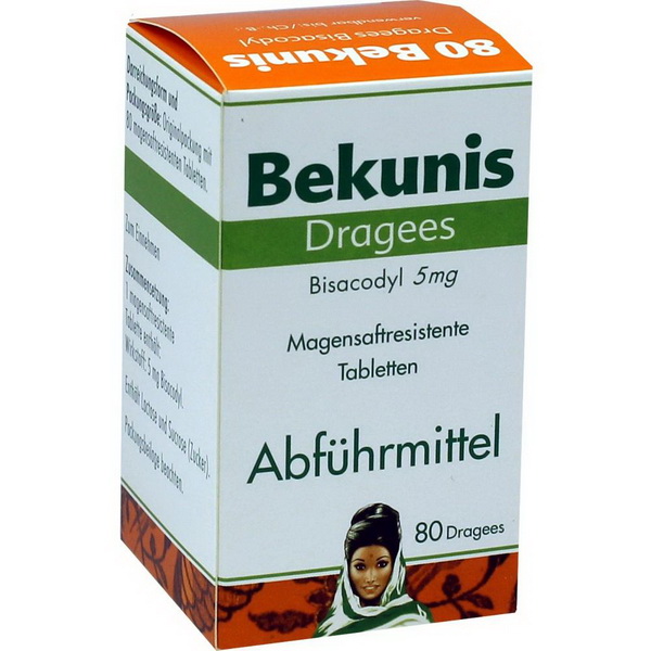 Bekunis Dragees Bisacodyl 5 mg ist ein Abführmittel aus der Gruppe der Triarylmethane.