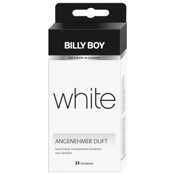 BILLY BOY white ist das Kondom für die Erfüllung in den wesentlichen Momenten – authentisch, selbstbewusst und schlicht. Die Kondome sind hauchzart und gefühlsaktiv. Ein besonders angenehmer Duft verleiht den BILLY BOY white-Kondomen das gewisse Extra. Die glatten, transparenten Kondome sind aus Naturkautschuklatex mit Reservoir und haben einen hautsympathischen Gleitfilm und eine zylindrische Form.