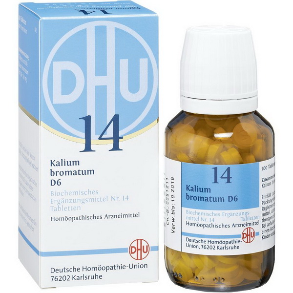 1 Tablette enthält: Kalium bromatum Trit. D6 250 mg.