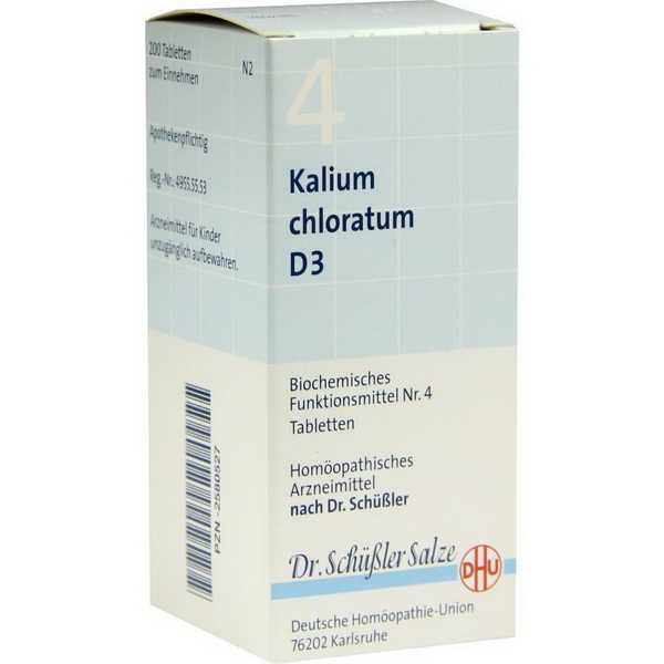 1 Tablette enthält: Kalium chloratum Trit. D3 250 mg.