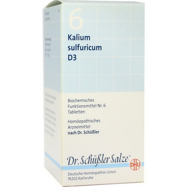 1 Tablette enthält: Kalium sulfuricum Trit. D3 250 mg.