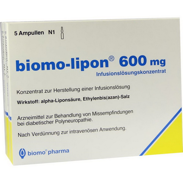 - 1 Ampulle mit 24 l Infusionslösungskonzentrat enthält 600mg Wirkstoff a63-Liponsäure.