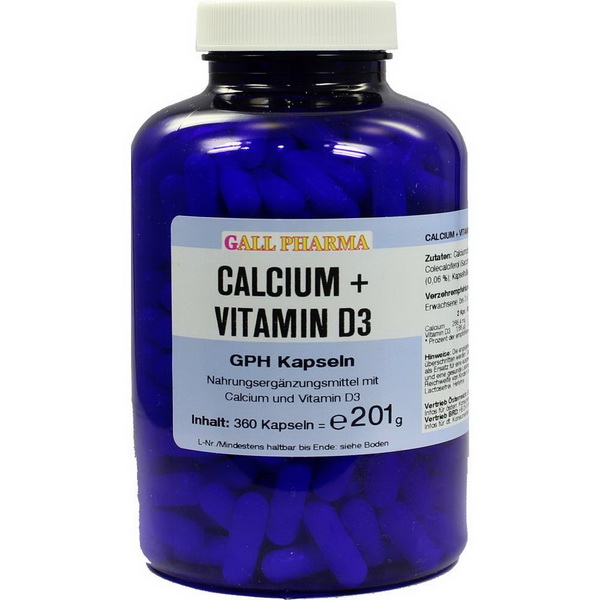 Calcium + Vitamin D3 GPH Kapseln enthalten 133 mg Calcium als Calciumcarbonat und Calciumcitrat und zusätzlich 0,83 µg Vitamin D3 (Colecalciferol) in einer Hartgelatinekapsel. Sowohl Calcium als auch Vitamin D3 können zur täglichen Nahrungsergänzung empfohlen werden, wobei die empfohlenen Tageszufuhren 800 mg Calcium und 5 µg Vitamin D3 betragen (RDA) und diese Menge in 6 Stück dieser Calcium + Vitamin D3 GPH Kapseln enthalten ist.