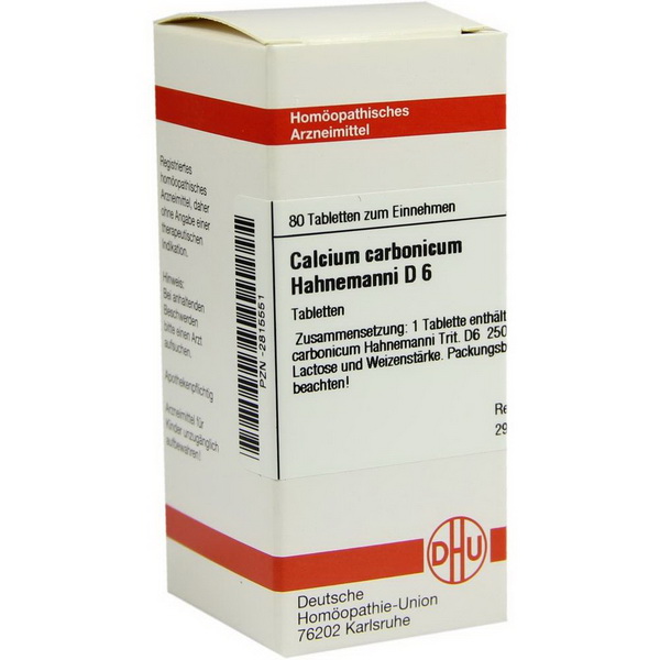 1 Tablette enthält: Calcium carbonicum Hahnemanni Trit. D6 250 mg.