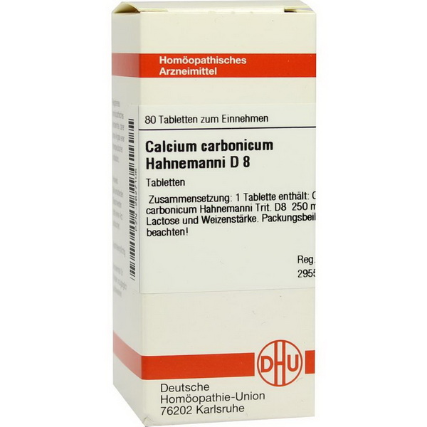 1 Tablette enthält: Calcium carbonicum Hahnemanni Trit. D8 250 mg.
