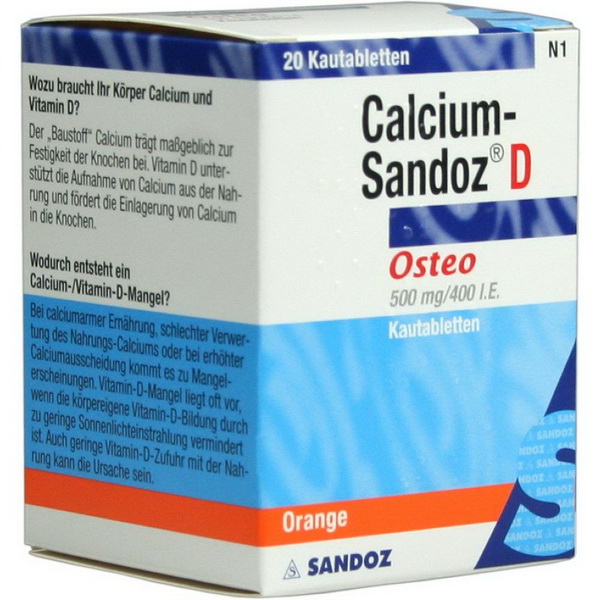 Allgemeine Informationen zu Calcium-Sandoz® D OsteoCalcium-Sandoz® D Osteo ist besonders zur Prävention und Behandlung von Osteoporose geeignet. Vitamin D verbessert die Aufnahme von Calcium in die Knochen. Erst mit Vitamin D wird der Knochen stabil und belastbar! Durch die optimale Versorgung mit Calcium und Vitamin D stärken Sie Ihre Knochen und bleiben weiterhin aktiv. Dies ist besonders ab dem 45. Lebensjahr empfohlen, wenn die Abbauvorgänge unserer Knochenmasse stark zunehmen.