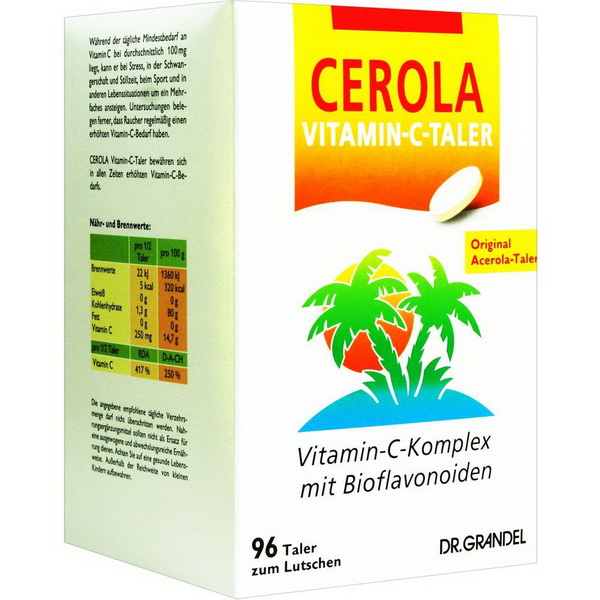 CEROLA Vitamin-C-Taler bewähren sich in allen Zeiten erhöhten Vitamin-C-Bedarfs, besonders bei nasskaltem Wetter, Müdigkeit, Stress und allgemeinen körperlichen Belastungen.