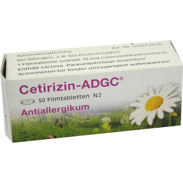 Der Wirkstoff von Cetirizin-ADGC ist Cetirizindihydro chlorid. 1 Filmtablette enthält 10 mg Cetirizindihydro chlorid.