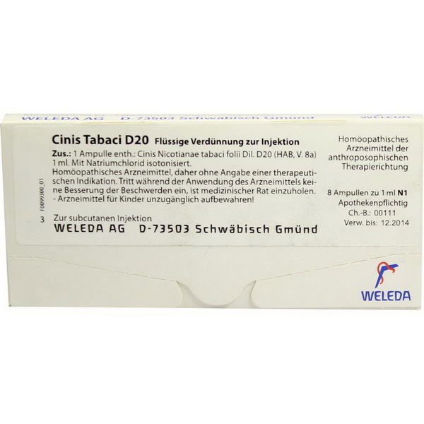 Zusammensetzung von CINIS TABACI D 20 Ampullen