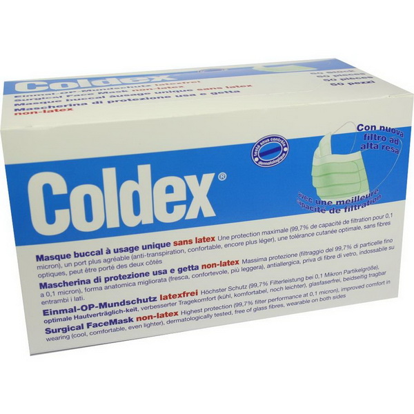 Coldex Mundschutz bietet maximale Filterleistung (99,7 % auch bei Kleinpartikeln). Er bietet optimale Sitz- und Passform sowie erhöhten Tragekomfort durch große Ohrenschlaufen. Coldex Mundschutz ist absolut glasfaser- und Latexfrei.