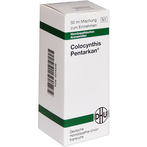 Wirkstoffe: Colocynthis (HAB 1934) Dil. D3 (HAB, Vorschrift 4a) 1,0 g, Atropinum sulfuricum Dil. D3 1,0 g, Dioscorea villosa Dil. D1 1,0 g, Momordica balsamina Dil. D2 1,0 g, Stannum metallicum Dil. D6 0,1 g.
