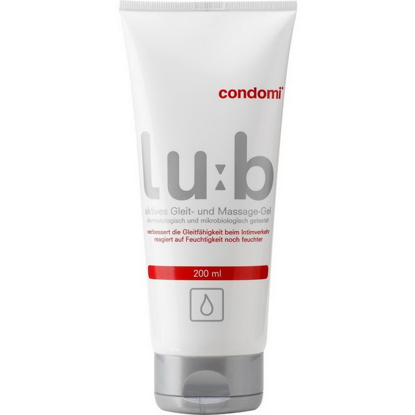 condomi lu:b verbindet sich mit der körpereigenen Feuchtigkeit zu einem natürlichen, hocheffektiven Gleit- und Massagegel und gleicht mangelnde Lubrikation aus.