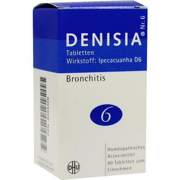 Denisia Nr. 6 wird bei Atemwegserkrankungen eingesetzt, die durch ein starkes Beklemmungs- und Erstickungsgefühl geprägt sind. Die Atmung ist schwer und keuchend, der Schleim in den Bronchien kann nicht abgehustet werden. Häufig verschlechtern sich die Beschwerden nachts.