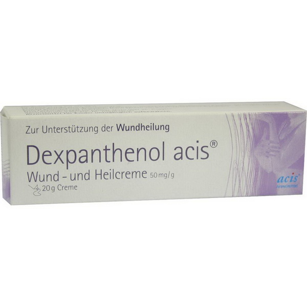 Dexpanthenol acis Wund- und Heilcreme ist ein Mittel zur Unterstützung der Wundheilung. Dexpanthenol acis Wund- und Heilcreme wird angewendet zur unterstützenden Behandlung der Heilung von Haut- und Schleimhautläsionen.