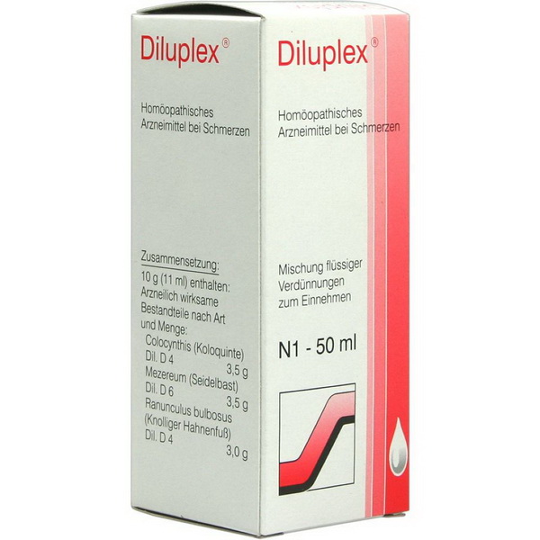 Bevor eine Behandlung mit Schmerzmitteln begonnen wird, sollte geklärt werden, ob die Krankheitszeichen nicht auf einer spezifisch zu behandelnden Grunderkrankung beruhen. Die Homöopathie setzt an den Wurzeln des Krankheitsgeschehens an. Diluplex® ist eine homöopathische Mischung flüssiger Verdünnungen zum Einnehmen und zugelassen für die Behandlung von Schmerzen.