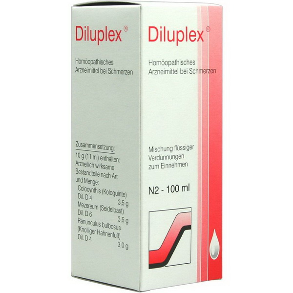 Bevor eine Behandlung mit Schmerzmitteln begonnen wird, sollte geklärt werden, ob die Krankheitszeichen nicht auf einer spezifisch zu behandelnden Grunderkrankung beruhen. Die Homöopathie setzt an den Wurzeln des Krankheitsgeschehens an. Diluplex® ist eine homöopathische Mischung flüssiger Verdünnungen zum Einnehmen und zugelassen für die Behandlung von Schmerzen.