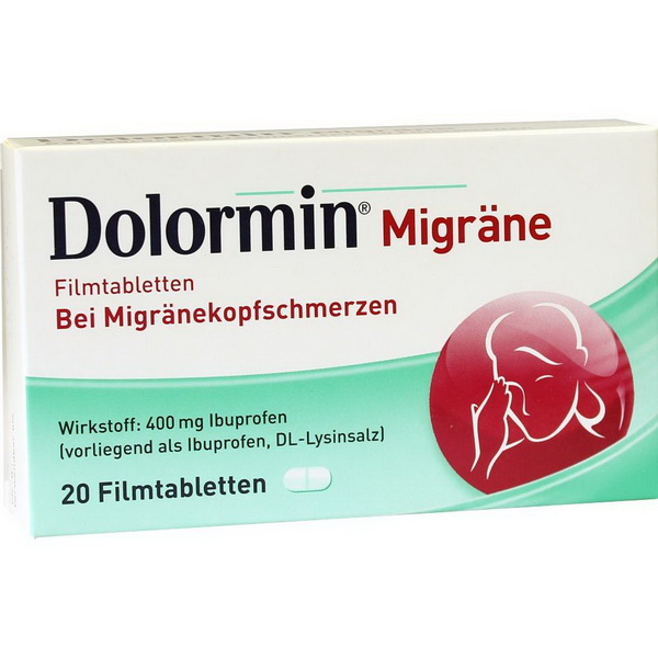 Dolormin Migräne Filmtabletten sind ein schmerzstillendes, fiebersenkendes und entzündungshemmendes Arzneimittel (nicht-steroidales Antiphlogistikum/Analgetikum). Dolormin Migräne Filmtabletten werden eingenommen zur