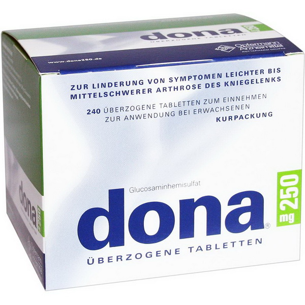 Allgemeine Informationen zu dona® 250 mgWer unter Arthrose leidet, weiß, wie schmerzhaft Bewegung sein kann. Was viele nicht wissen - Arthrose-Symptome kann man lindern, der Krankheitsverlauf kann verlangsamt werden. dona® wirkt umfassend: es bekämpft die Beschwerden, die Schmerzlinderung erfolgt langfristig.