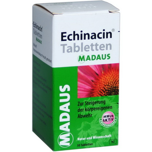 Echinacin Tabletten Madaus sind ein pflanzliches Arzneimittel, das als einzigen wirksamen Bestandteil den Presssaft aus der frischen blühenden Pflanze des Roten Sonnenhuts enthält.