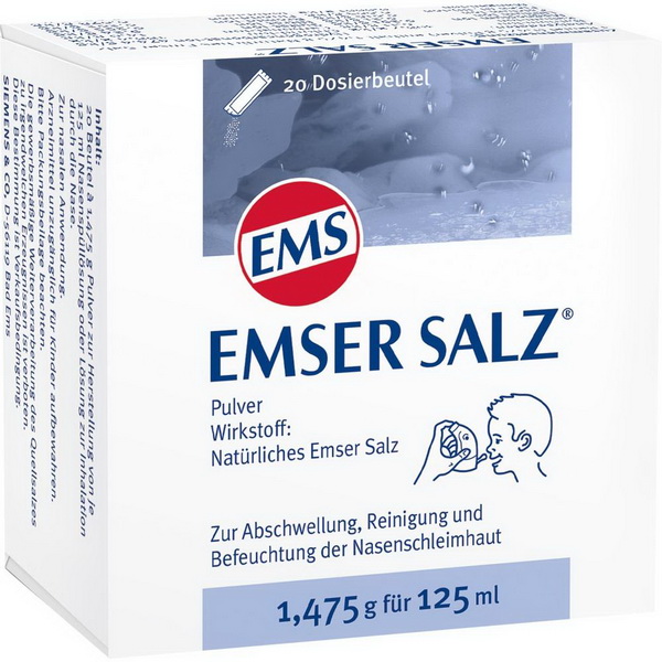 Vor allem bei akuten und chronischen Entzündungen des Nasenraums, die mit vermehrter Schleimbildung und Schleimhautschwellung einhergehen, empfehlen sich Nasenspülungen mit Emser Salz, denn Natürliches Emser Salz hat eine einzigartige Dreifachwirkung: