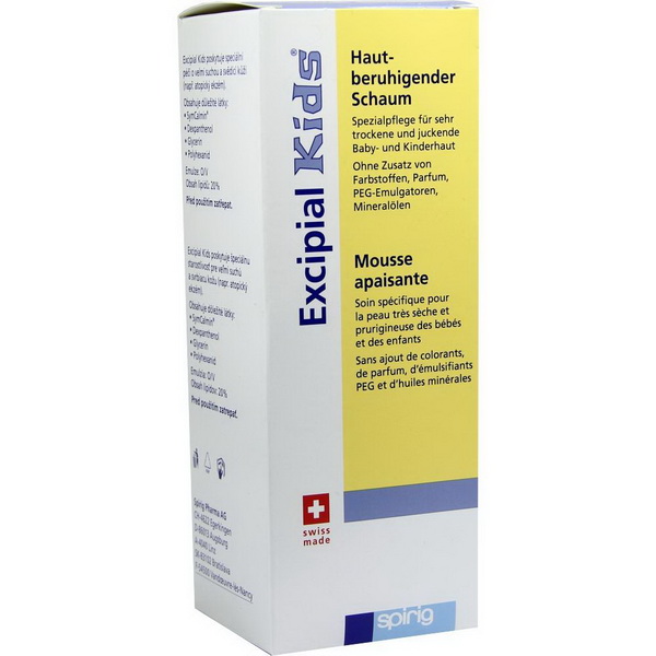 Der Pflegeschaum im praktischen Dosier-Spender ist insbesondere für die schonende Anwendung bei irritierter, geröteter Baby- und Kinderhaut geeignet. Die leichte Schaumtextur ermöglicht ein sanftes Auftragen und zieht schnell ein. Excipial Kids® Schaum ist angenehm kühlend und beruhigend. Das enthaltende Polyhexamid besitzt keimreduzierende Eigenschaften. Der Schaum ist ohne Zusatz von Farbstoffen, Parfum, PEG-Emulgatoren und Mineralölen.