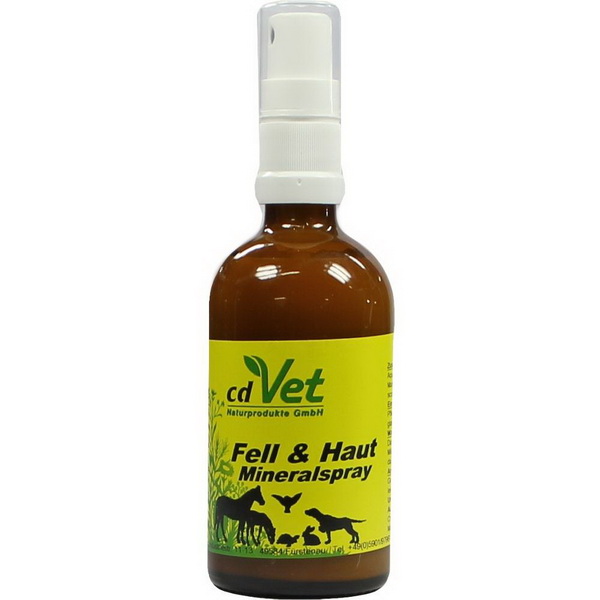 cdVet Fell & Haut Mineralspray ist ein natürliches Fellpflegemittel bei juckenden Plagegeistern, schuppenbedingtem Juckreiz, schwieligen Hautveränderungen, trockenen Hautpartien und glanzlosem Fell.