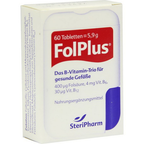 FolPlus enthält 400 μg Folsäure, 4 mg Vitamin B6 und 30 μg Vitamin B12 pro Tablette. Die Tabletten sind frei von Laktose, Gluten, Farbstoffen und Konservierungsmitteln.