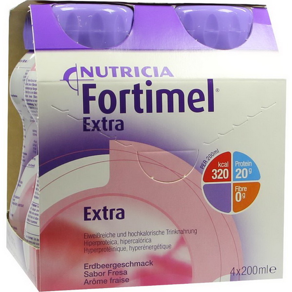 Fortimel Extra ist eine hochkalorische und eiweißreiche Trinknahrung ohne Ballaststoffe.