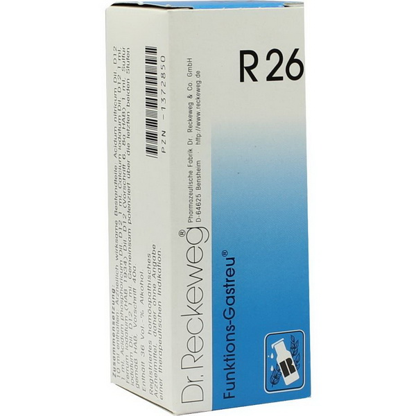 Funktions-Gastreu® R 26 ist ein registriertes homöopathisches Arzneimittel, daher ohne Angabe einer therapeutischen Indikation. Hinweis: Bei während der Anwendung des Arzneimittels fortdauernden Krankheitssymptomen ist medizinischer Rat einzuholen.