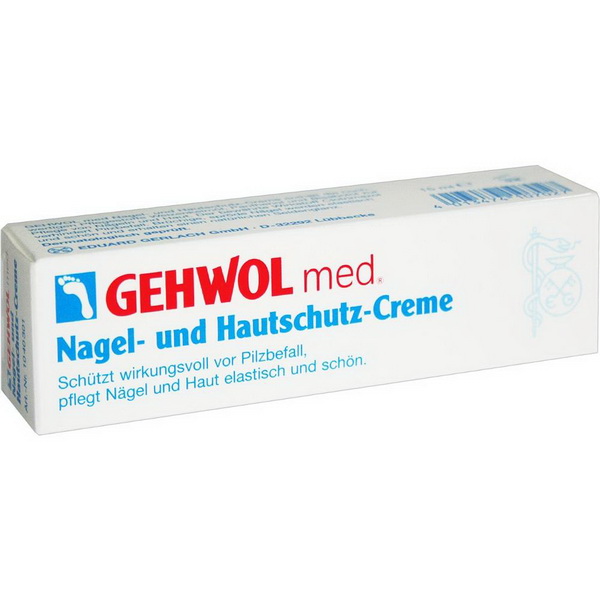 Schützt wirkungsvoll vor Pilzbefall, pflegt Nägel und Haut elastisch und schön GEHWOL® med Nagel- und Hautschutz- Creme enthält die hochwertigen Pflegestoffe Weizenkeimöl, Panthenol und Bisabolol zur Pflege von Nägeln und Haut.