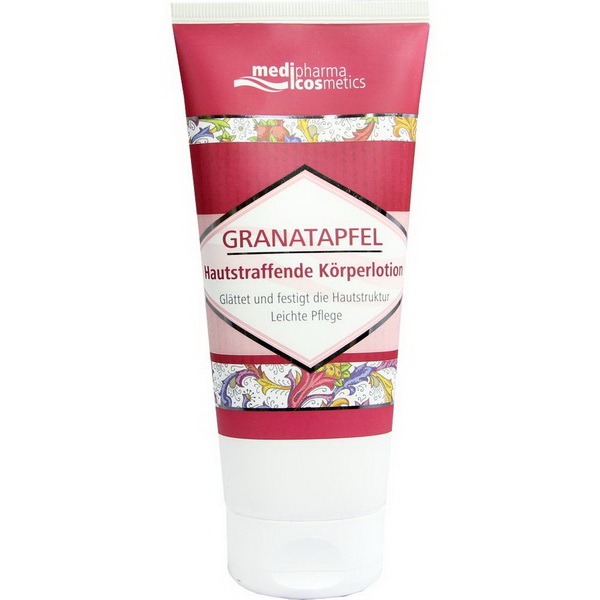 Granatapfel Hautstraffende Körperlotion angereichert mit wertvollem Granatapfelsamenöl und hautstraffenden Wirkstoffen glättet und festigt die Hautstruktur. Die leichte Körperlotion zieht schnell ein, schützt die Haut vor vorzeitiger Hautalterung und pflegt sie zart und geschmeidig. Genießen Sie den cremig frischen Duft von Granatapfel und Olive.
