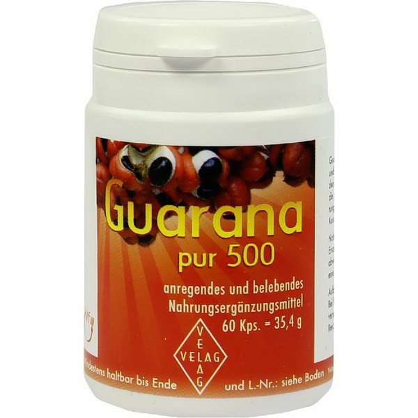 Nahrungsergänzungsmittel mit Guarana-Extrakt. Coffein hilft die Wachheit und Aufmerksamkeit zu erhöhen, die Ermüdung bei Ausdauerleistung zu reduzieren.