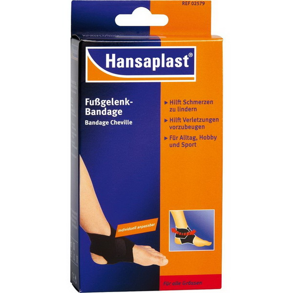 Die Hansaplast Fußgelenk-Bandage hilft schwache oder schmerzende Gelenke zu entlasten und ist für Alltag, Hobby und Sport gleichermaßen geeignet.