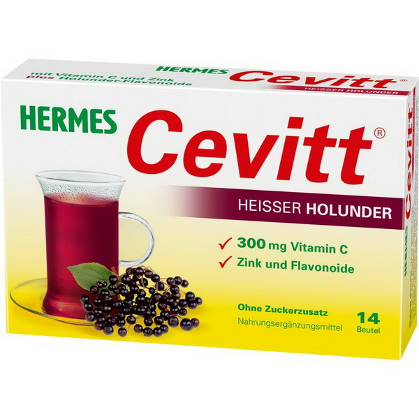 Hermes Cevitt Heißer Holunder - ein starkes Quartett für Ihre AbwehrkräfteVitamin C, Flavonoide, Zink und Inulin ergänzen sich in ihrer Wirkung: