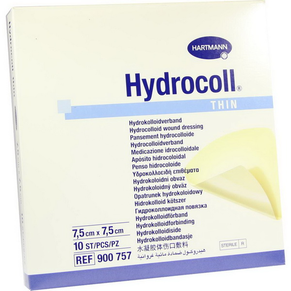 Saugender, selbsthaftender Hydrokolloid-Verband mit semipermeabler, keimdichter Deckschicht; bewirkt durch Gelumwandlung der hydrokolloiden Verbandanteile ein feuchtes Wundmilieu, wobei das Gel so lange saugfähig ist, bis die Hydrokolloide gesättigt sind; fördert Granulation und Epithelisierung; ohne Wundirritation zu entfernen; in verschiedenen Ausführungen und Zuschnitten erhältlich.