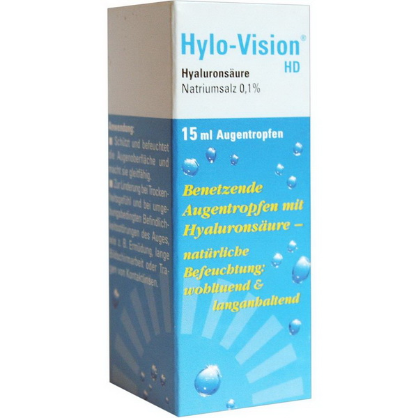 15 ml Benetzungslösung, enthält 0,1 % Hyaluronsäure (niedrigviskös).