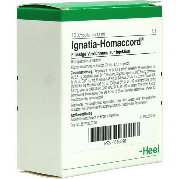 1 Ampulle zu 1,1 ml (= 1,1g) enthält: Wirkstoffe: Strychnos ignatii Dil.