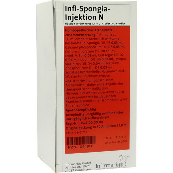Infi-Spongia-Injektion N darf nicht angewendet werden bei Jodüberempfindlichkeit. Bei Schilddrüsenerkrankungen nicht ohne ärztlichen Rat anwenden.