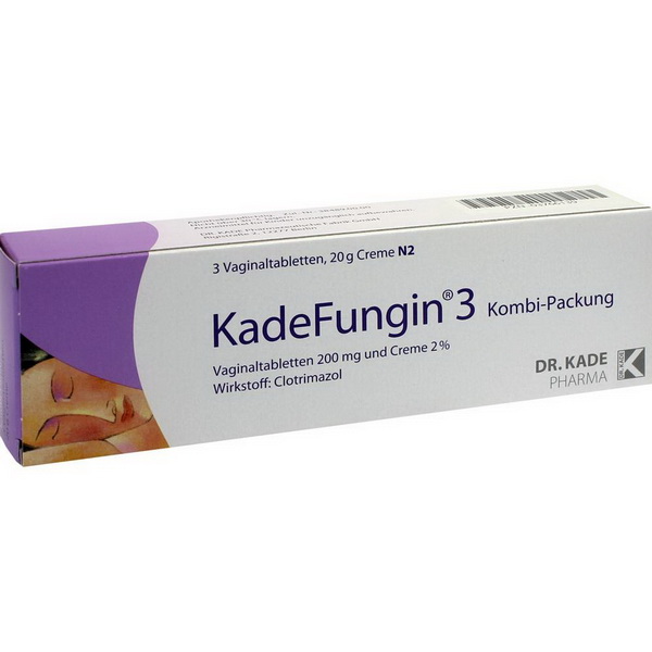 Dieses Arzneimittel ist ein so genanntes Antimykotikum, ein Mittel gegen Pilzinfektionen (Mykosen). KadeFungin 3 Kombi-Packung wird angewendet bei Infektionen der Scheide und des äußeren Genitalbereiches durch Hefepilze (meist Candida albicans).
