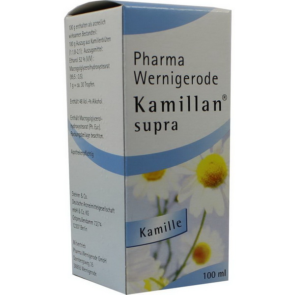 100 g enthalten: 100 g Auszug aus Kamillenblüten (1:1,8-2,1); Auszugsmittel: Ethanol 52 % (V/V) : Macrogolglycerolhydroxystearat (99,5 : 0,5).