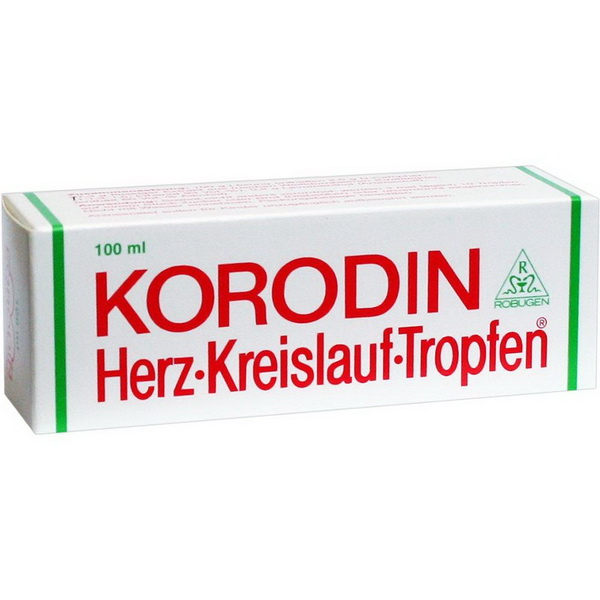 Soweit nicht anders verordnet, nimmt man 3 mal täglich 10 Tropfen KORODIN® auf einem Stück Zucker, das man im Mund zergehen lässt oder auf einem Stückchen Brot (Diabetiker), das man langsam zerkaut oder man tropft es unverdünnt auf die Zunge, falls der medizinische Geschmack nicht stört. Je nach Grad der Beschwerden kann die Dosierung nach Rücksprache mit dem Arzt auf bis zu 3 mal täglich 25 Tropfen erhöht werden. Bei Schwäche und Ohnmachtsanfällen nimmt man im Abstand von 15 Minuten 5 bis 10 Tropfen KORODIN ®, bis wieder Besserung eintritt. KORODIN ® kann je nach Art der Beschwerden auch zur Dauertherapie eingenommen werden. (*) Da D-Campher nicht wasserlöslich ist, sollte KORODIN® nicht in Wasser eingenommen werden. Zum Tropfen ist die Flasche senkrecht zu halten und zu Beginn ist eventuell mit dem Finger leicht gegen den Flaschenboden zu klopfen. (Apothekenpflichtig)