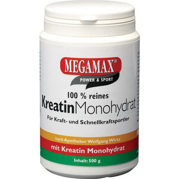Kreatin ist eine organische Säure, die Sie vor allem durch den Verzehr von frischem Fisch und Fleisch aufnehmen können. Es erhöht die körperliche Leistung bei Schnellkrafttraining im Rahmen kurzzeitiger intensiver körperlicher Betätigung, wenn Sie mindestens 3 g pro Tag einnehmen. MEGAMAX Kreatin Monohydrat enthält den Stoff in reiner Form.