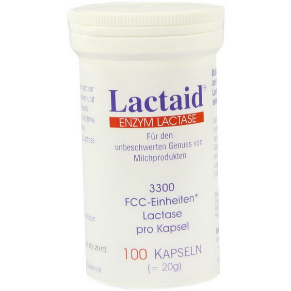 Füllstoff Dicalciumphosphat, Gelatine*, Lactase (10 %; 10g / 100g), Farbstoff E 171*